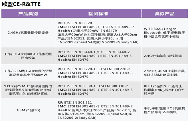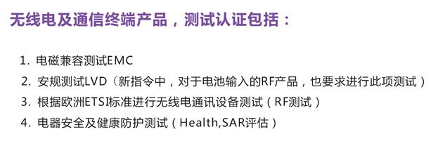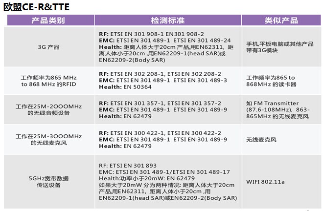 2014年5月22日,無線電設(shè)備指令(TheRadio Equipment Directive,RED)2014/53/EU正式在歐盟官方公報(bào)(OG)上公布,并于2014年6月12日生效。該指令將取代無線電與電信終端設(shè)備指令(R&TTE指令),2016年6月12日之前,成員國應(yīng)將該指令轉(zhuǎn)化為成員國法律,原R&TTE指令(1999/5/EC)也隨之作廢。2016年6月13日起,成員國應(yīng)采用新無線電設(shè)備指令(RED);2017年6月13日起,符合舊R&TTE指令的產(chǎn)品將不允許在歐盟市場上銷售。 On May 22, 2014, RED2014/53/EU Officially published in theEuropean Union's official gazette , and take effect on June 12, 2014. Thedirective will replace R&TTE directive, Before June 12, 2016, member statesshould convert the directive to member states law and the original R&TTEdirective (1999/5 / EC) is invalid. June 13, 2016, member states should adoptthe new RED; from June 13, 2017 products that meet the old R&TTE directivewill not be allowed in the eu market.