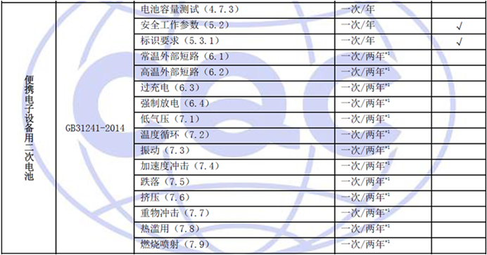 信息技術(shù)設(shè)備(含電信終端設(shè)備)、音視頻電子設(shè)備用鋰離子電池組 | GB4943.1-2011 GB8898-2011 | 代表型號(hào)5臺(tái),其余型號(hào)各1臺(tái) |
