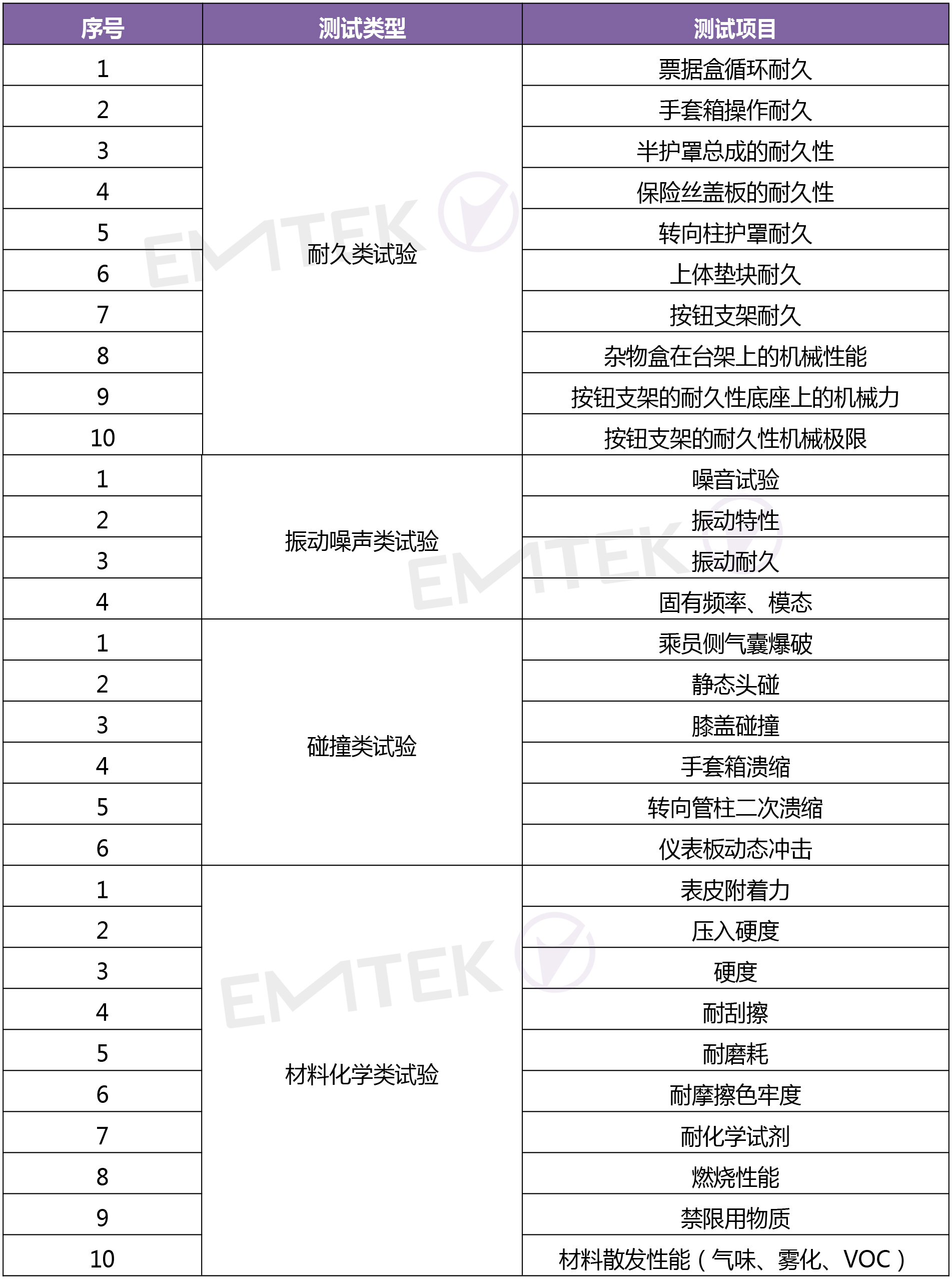 考核儀表板材料化學(xué)性能,比如壓入硬度、耐磨、表皮附著力、剝離強(qiáng)度、耐化學(xué)試劑、氣味、霧化、VOC等。