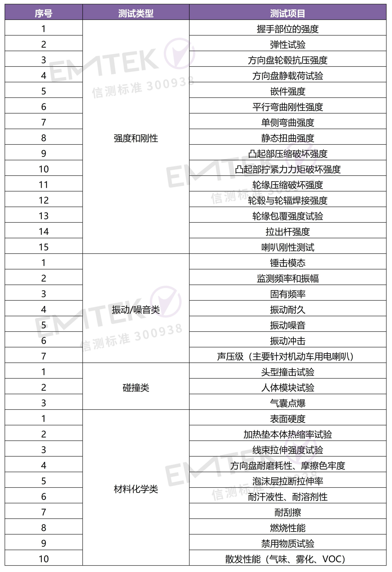 考核方向盤材料化學(xué)性能,比如表面硬度、耐磨、泡沫層拉斷拉伸率、耐汗液性、耐溶劑性、氣味、VOC等。