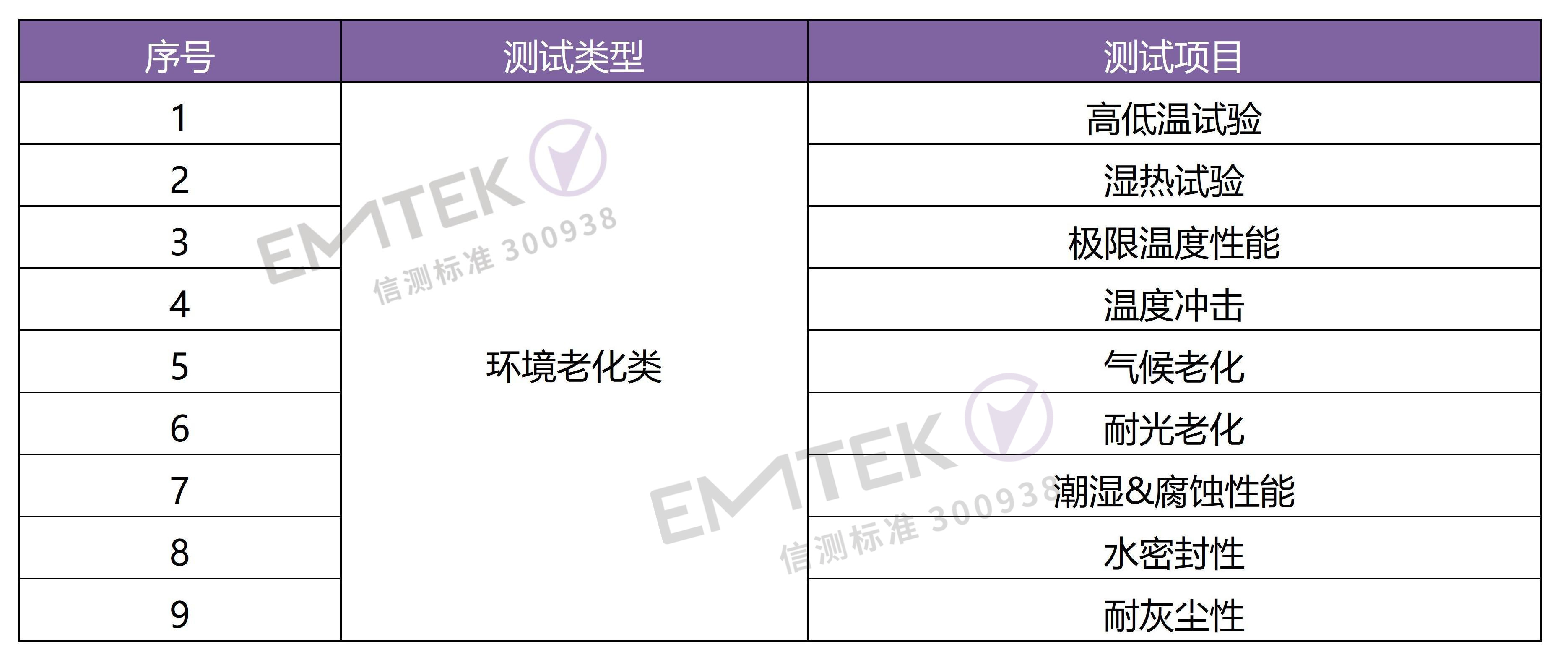 是將產(chǎn)品暴露在自然的或人工的環(huán)境條件下經(jīng)受其作用,以評價(jià)產(chǎn)品在實(shí)際使用、運(yùn)輸和貯存的環(huán)境條件下的性能,并分析研究環(huán)境因素的影響程度,包含的環(huán)境試驗(yàn)如高低溫試驗(yàn)、氣候老化、耐光老化、潮濕&腐蝕、耐灰塵性等;
