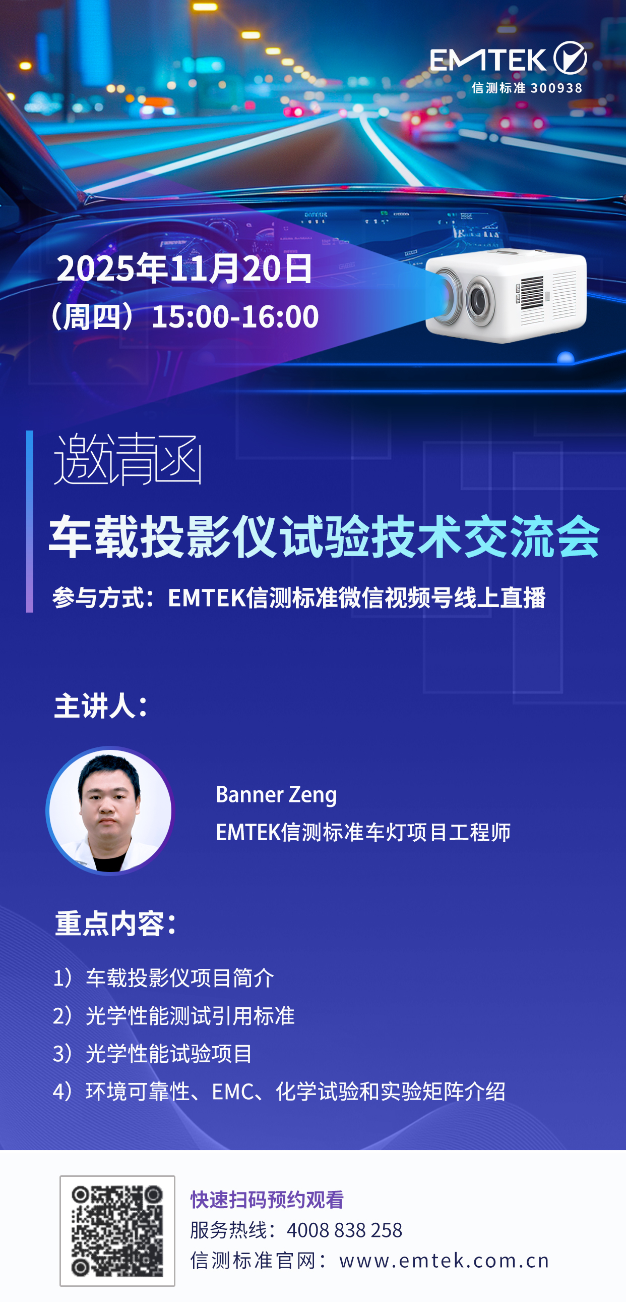 11月20日(下周四)下午15:00,信測(cè)標(biāo)準(zhǔn)特邀您參與“車載投影儀試驗(yàn)技術(shù)線上交流會(huì)”,共同就光學(xué)性能試驗(yàn)項(xiàng)目及最新的認(rèn)證標(biāo)準(zhǔn),相關(guān)試驗(yàn)要求與案例進(jìn)行交流與探討,趕緊預(yù)約觀看吧!