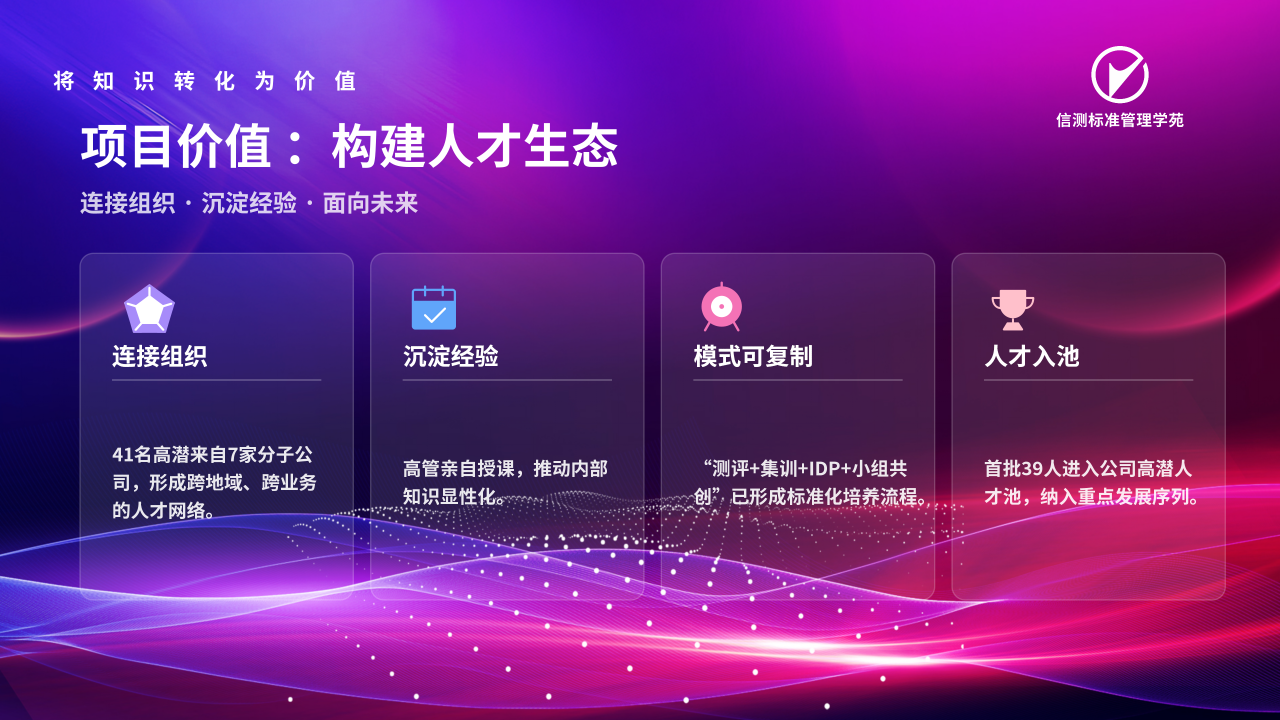 青苗計(jì)劃是信測標(biāo)準(zhǔn)人才梯隊(duì)建設(shè)的重要一環(huán),聚焦高潛員工能力成長,圍繞“選拔—賦能—實(shí)踐”主線,為高潛員工構(gòu)建了一條從潛力識別到能力轉(zhuǎn)化的清晰的成長路徑。
