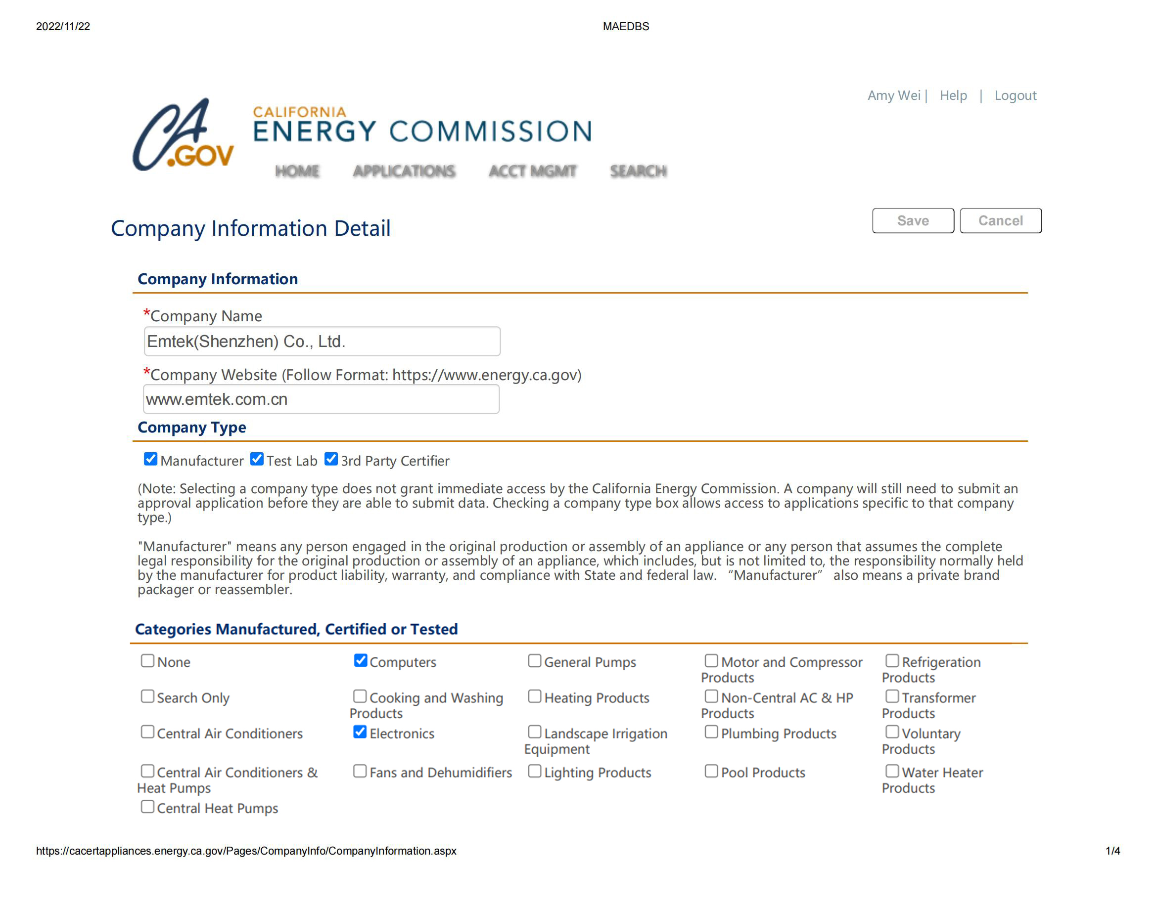 加州能源委員會(huì) (CEC) 要求受監(jiān)管的電器必須滿(mǎn)足CEC Title20電器能效標(biāo)準(zhǔn)要求,并在CEC能效數(shù)據(jù)庫(kù)系統(tǒng)(MAEDbS)中注冊(cè)列名,注冊(cè)信息包括品牌名稱(chēng)、制造商名稱(chēng)和型號(hào)等。