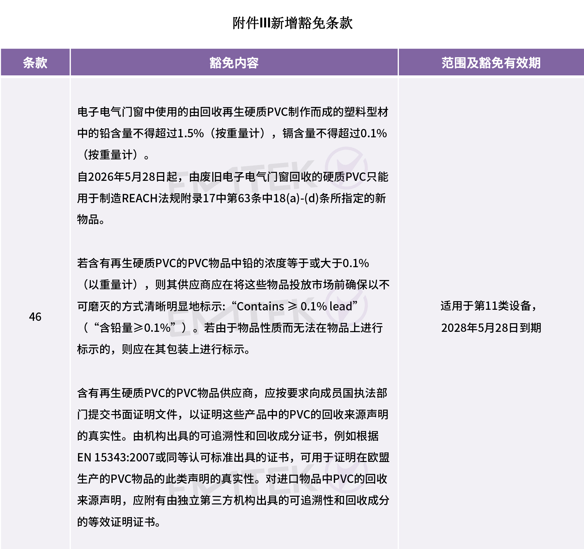 RoHS指令A(yù)nnex III 提議新增第46條關(guān)于lead 和 cadmium豁免條款