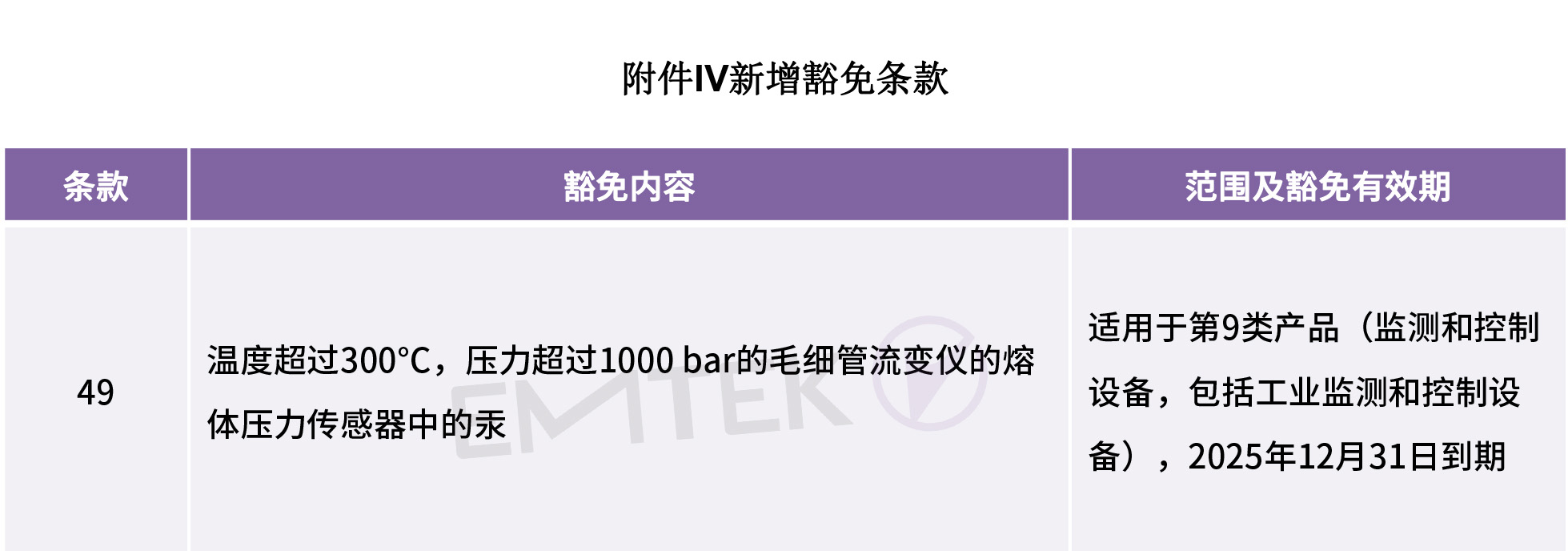 RoHS指令 Annex IV 新增汞豁免條款