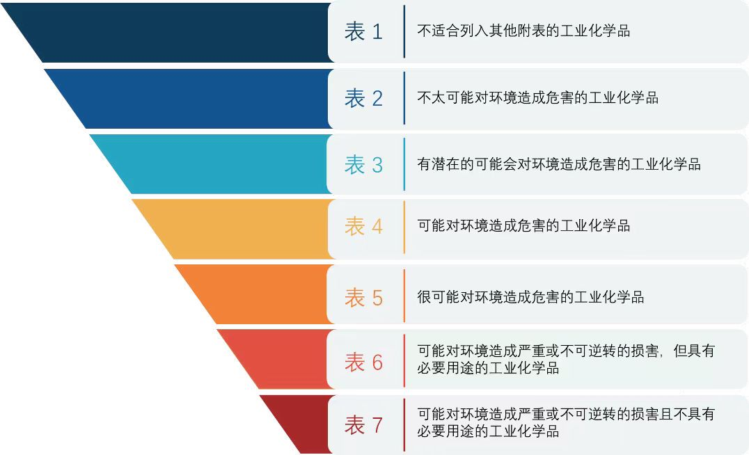 工業(yè)化學(xué)品環(huán)境管理標(biāo)準(zhǔn)(IChEMS)由澳大利亞政府制定,旨在高效地管理工業(yè)化學(xué)品對環(huán)境的風(fēng)險,同時為澳大利亞各地的企業(yè)提供一致的要求。IChEMS登記冊記錄了化學(xué)品的環(huán)境管理標(biāo)準(zhǔn),包括特定工業(yè)用途的風(fēng)險管理措施。工業(yè)化學(xué)品根據(jù)風(fēng)險大小被列入登記冊下述的7個附表中,其中附表6 和 7 包含的是對環(huán)境影響最大的工業(yè)化學(xué)品,IChEMS將致力于減少這些化學(xué)品的使用。