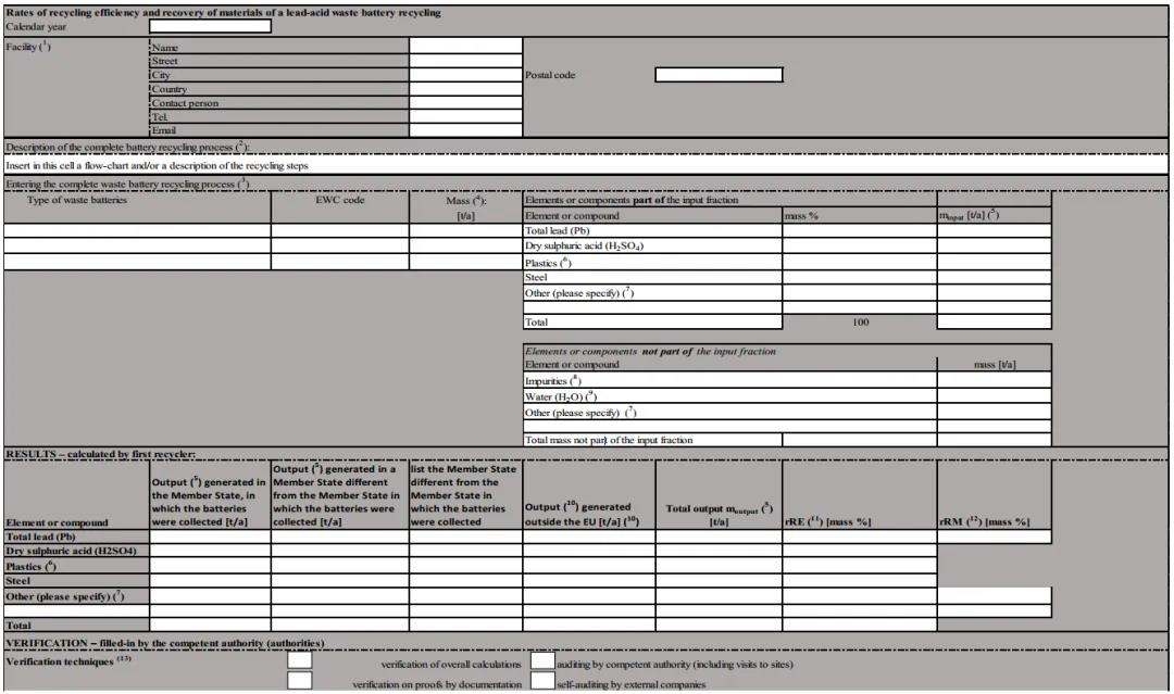 該法案詳細規(guī)定了電池回收效率和材料回收率的計算文件填報方法,并為鉛酸廢電池、鋰基廢電池、鎳鎘廢電池、其他廢電池分別設(shè)定相應(yīng)的文件格式。