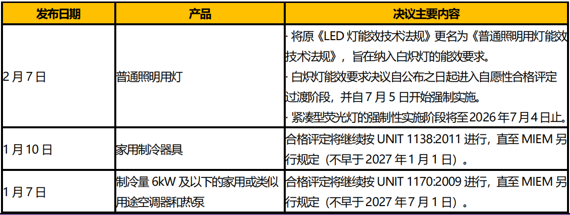 烏拉圭工業(yè)、能源與礦業(yè)部(MIEM)于2025 年1 月以來發(fā)布多項能效要求相關決議,見表2。