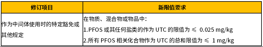 對PFOS限制要求的修訂內容如下:
